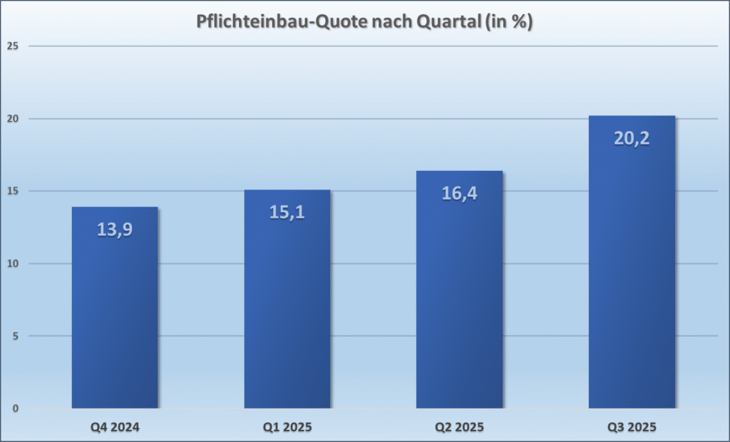 Die Datengrundlage für die aktuelle Diskussion liefert das quartalsweise Monitoring der Bundesnetzagentur zum Roll-out intelligenter Messsysteme. Für das dritte Quartal 2025 weist die Behörde aus, dass 4.651.943 sogenannte Pflichteinbaufälle existieren, also Letztverbraucher mit einem Jahresstromverbrauch zwischen 6 und 100 MWh sowie steuerbare Verbrauchseinrichtungen nach § 14a EnWG, etwa Wallboxen oder Wärmepumpen. Von diesen Fällen waren zum Stichtag 30. September 2025 insgesamt 941.170 mit einem intelligenten Messsystem ausgestattet, was einer Ausstattungsquote von 20,2 Prozent entspricht. Damit ist das gesetzliche Einbauziel von 20 Prozent dieser Pflichtfälle bis zum 31. Dezember 2025 auf aggregierter Ebene bereits im Herbst erreicht worden.