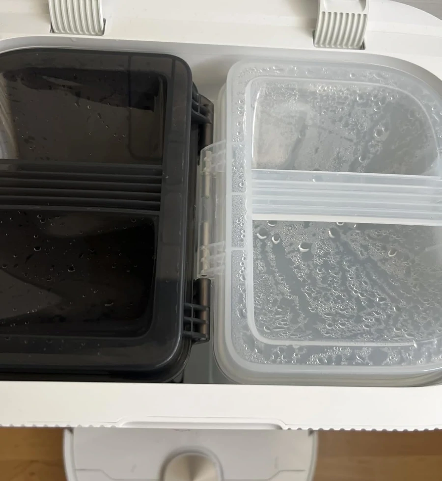 Dazu kommen Heißlufttrocknung, automatisches Nachfüllen von Wasser und Reinigungsmittel sowie eine sehr lange, handfreie Entleerungsphase bis zu 75 Tagen, je nach Nutzung.